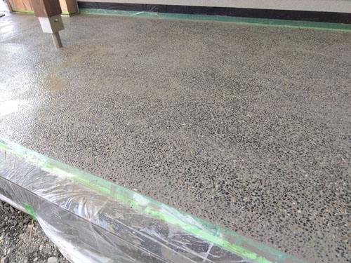 小川のお家の玄関土間とポーチの洗い出し仕上げ(大磯砂利)工事が終わりました。