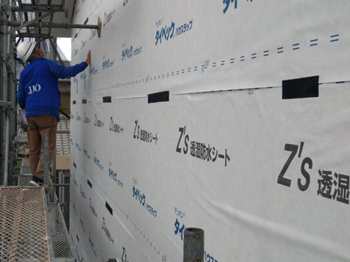 建物全体を覆う外装下地(防水紙、防水テープ等)の施工状態を検査して
