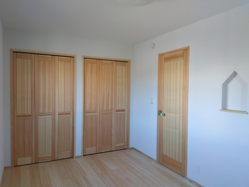 奥様のお部屋は隠す収納となっていて3枚扉のクローゼットが2ヶ所と
