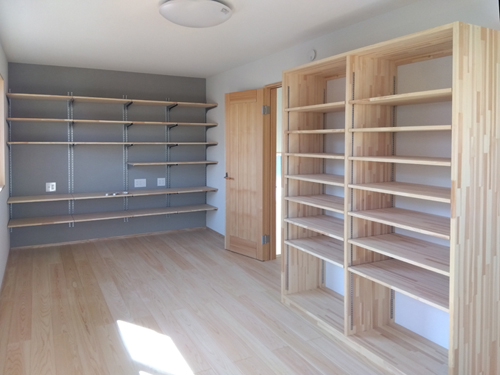 ご主人のお部屋はお仕事柄、書籍や書類などが多いため可動式の壁面収納と
