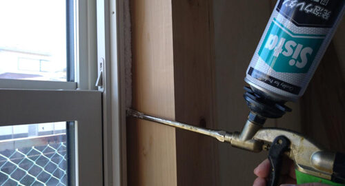 青葉町のお家では室内側のサッシ廻りにできてしまう隙間に発泡ウレタンで充填処理をしました。 基礎・壁・天井は、断熱材(吹付硬質ウレタンフォーム モコフォーム)で包み込んでいますがドアとサッシは、はめ込む際にどうしてもサッシ … 続きを読む 外部からの/青葉町の家