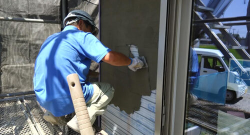 稲川のお家では、外壁工事の仕上げに取り掛かかる為、塗り壁の下地としてベースコートを均一に塗ったうえに、網目状のメッシュを乾燥クラック予防のためのふせ込みまで終了していました。そちらの様子は➡外壁/稲川の家 – … 続きを読む 塗り壁/稲川の家