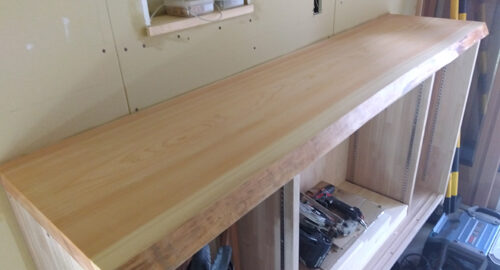 稲川のお家では只今、一枚板を天板にした贅沢な造りの玄関収納を制作中。玄関ホールがワンランク上の上質な空間になっていくこと間違いなし。仕上がりが楽しみです。 こちらは子育てグリーン住宅支援事業の要件を満たしているお家です。