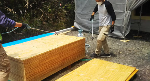 兵太夫のお家では現場にてホウ酸による防腐防蟻処理【ボロンdeガード工法】での作業を行っていました。 ホウ酸を木部に処理すると効果を発揮しつづけ、害虫にも食べられなくなり、結果的に地震時にも強い住宅を実現する優れた効果があ … 続きを読む 害虫被害 ~兵太夫の家~