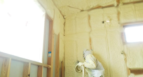 兵太夫のお家では断熱工事に入ってくれていました。 今回も現場で建物の内側から直接吹付けていく発泡型硬質ウレタンフォームの断熱材 『 家にも人にもやさしいダルトフォーム』を壁だけでなく、天井にも吹き付けていきます。 ダルト … 続きを読む ダルトフォーム ~兵太夫の家~
