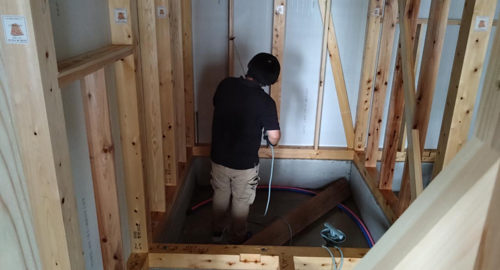 三右衛門新田のお家では、ホウ酸を使った「ボロンdeガード」による防腐防蟻処理がおこなわれました。 自然由来のホウ酸は人や動物には優しいですが白蟻には厳しく、揮発もしないので空気を汚す心配もありませんし、なにより効果が低下 … 続きを読む 防蟻処理~三右衛門新田の家~