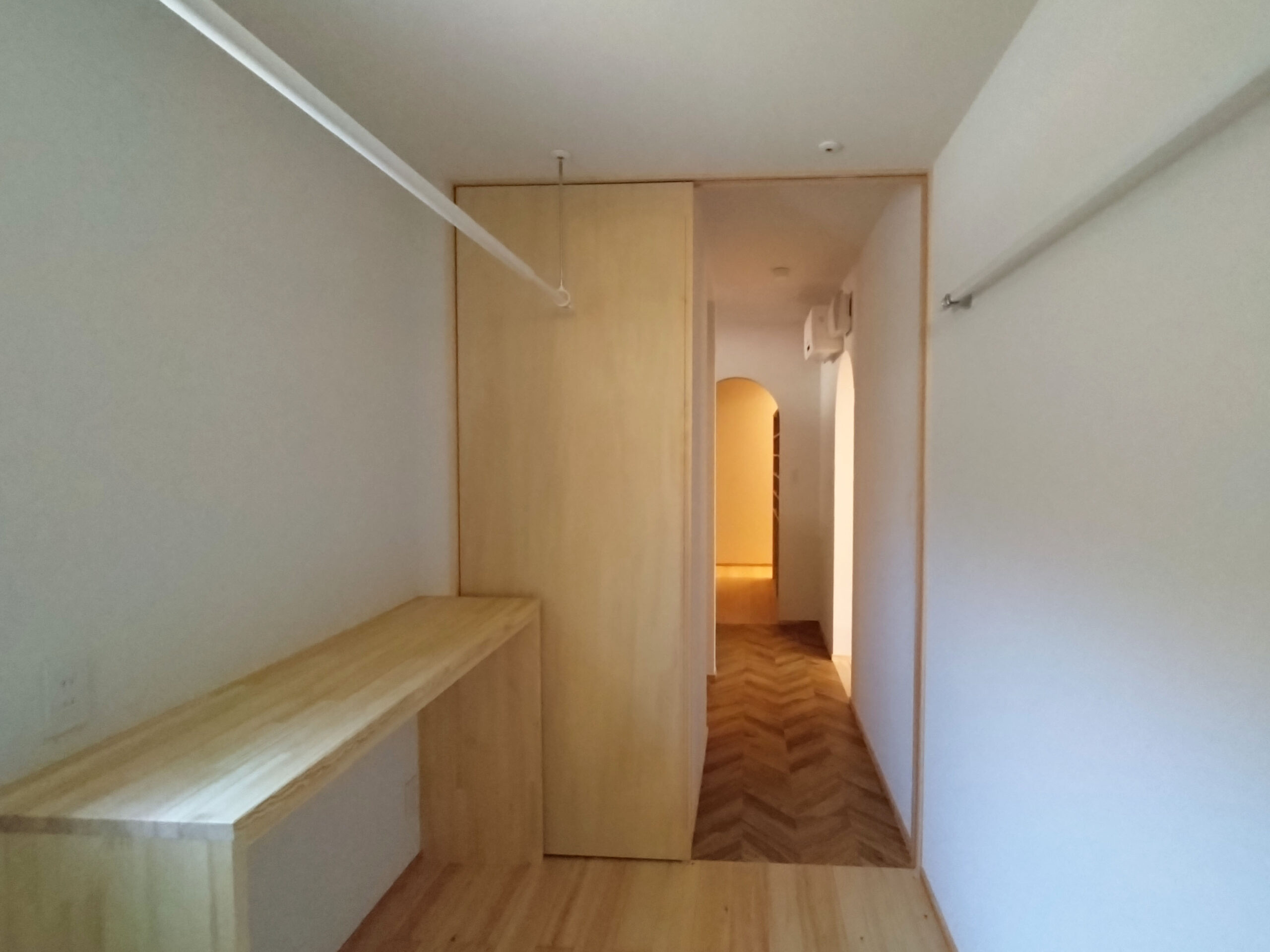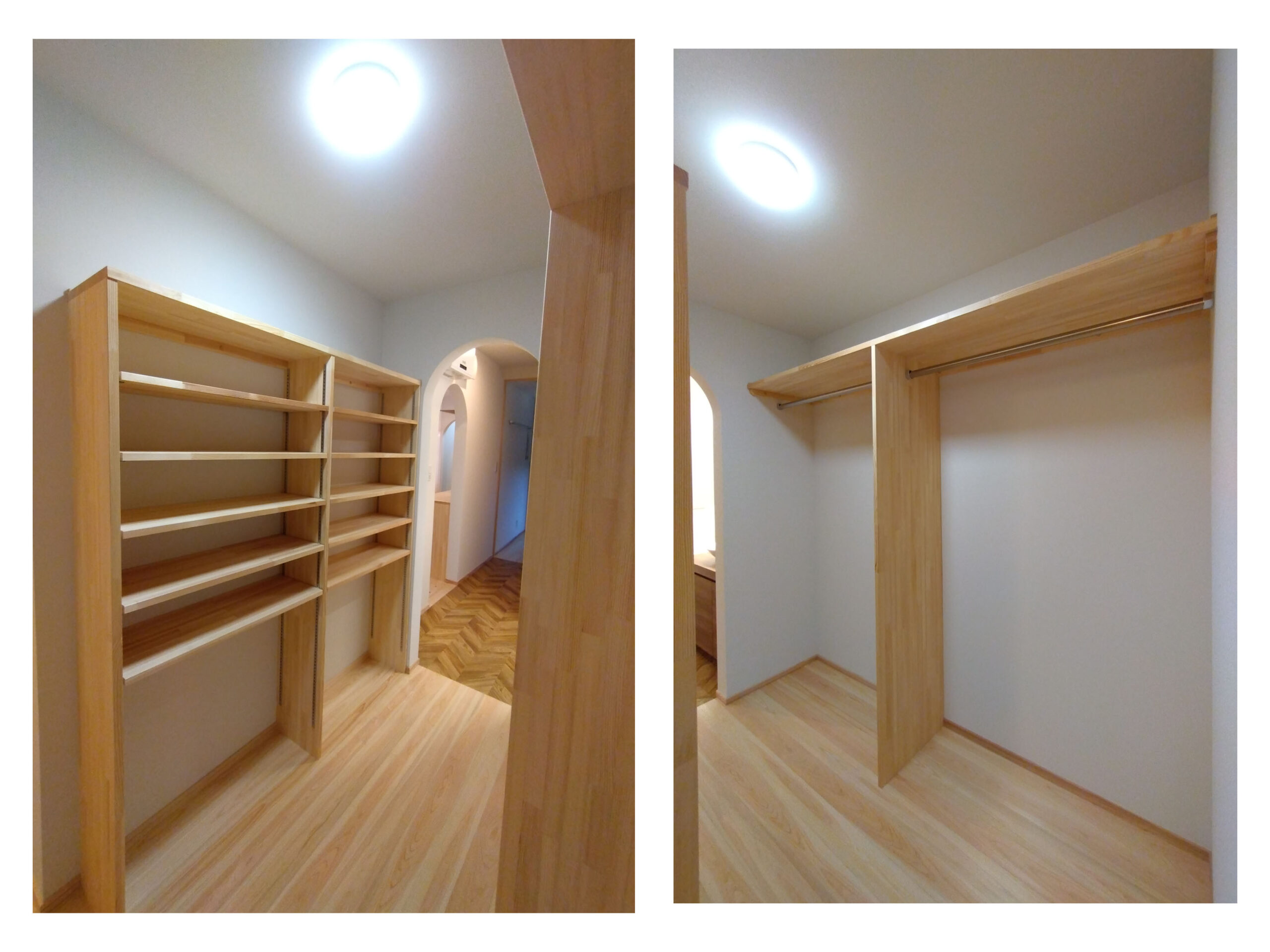 寝室からそのまま行けるクローゼットは両面収納。その先には洗面化粧台・脱衣室・浴室へと続きます。