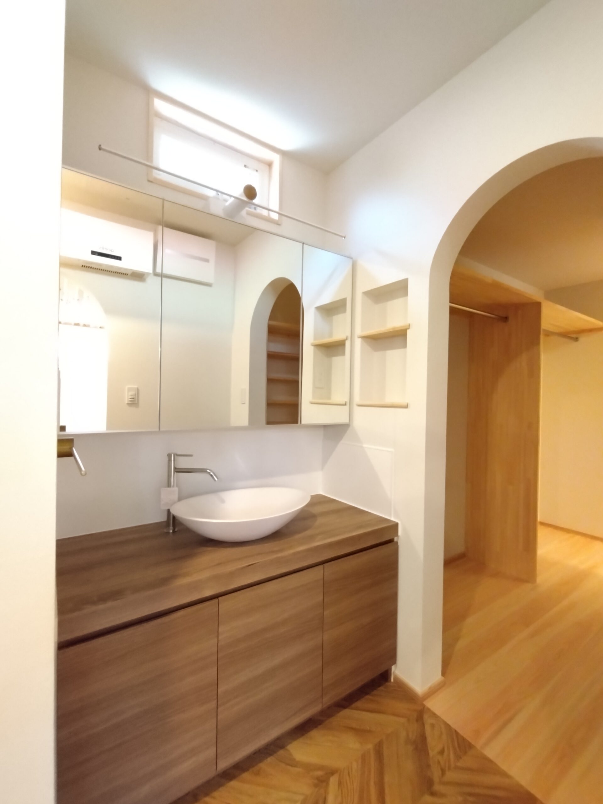 洗面化粧台の横にはクローゼットがあるので朝の身支度動線が最短に。