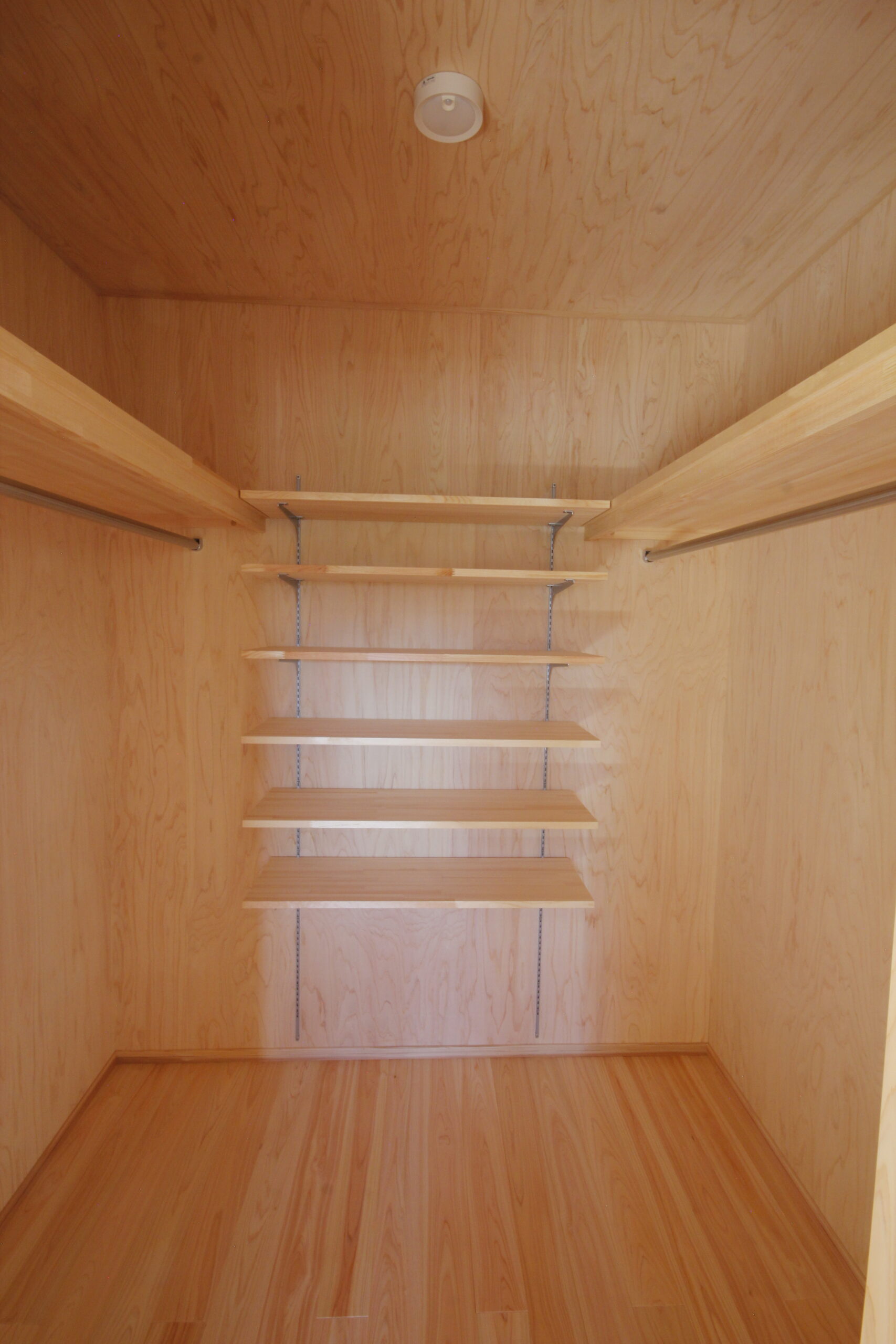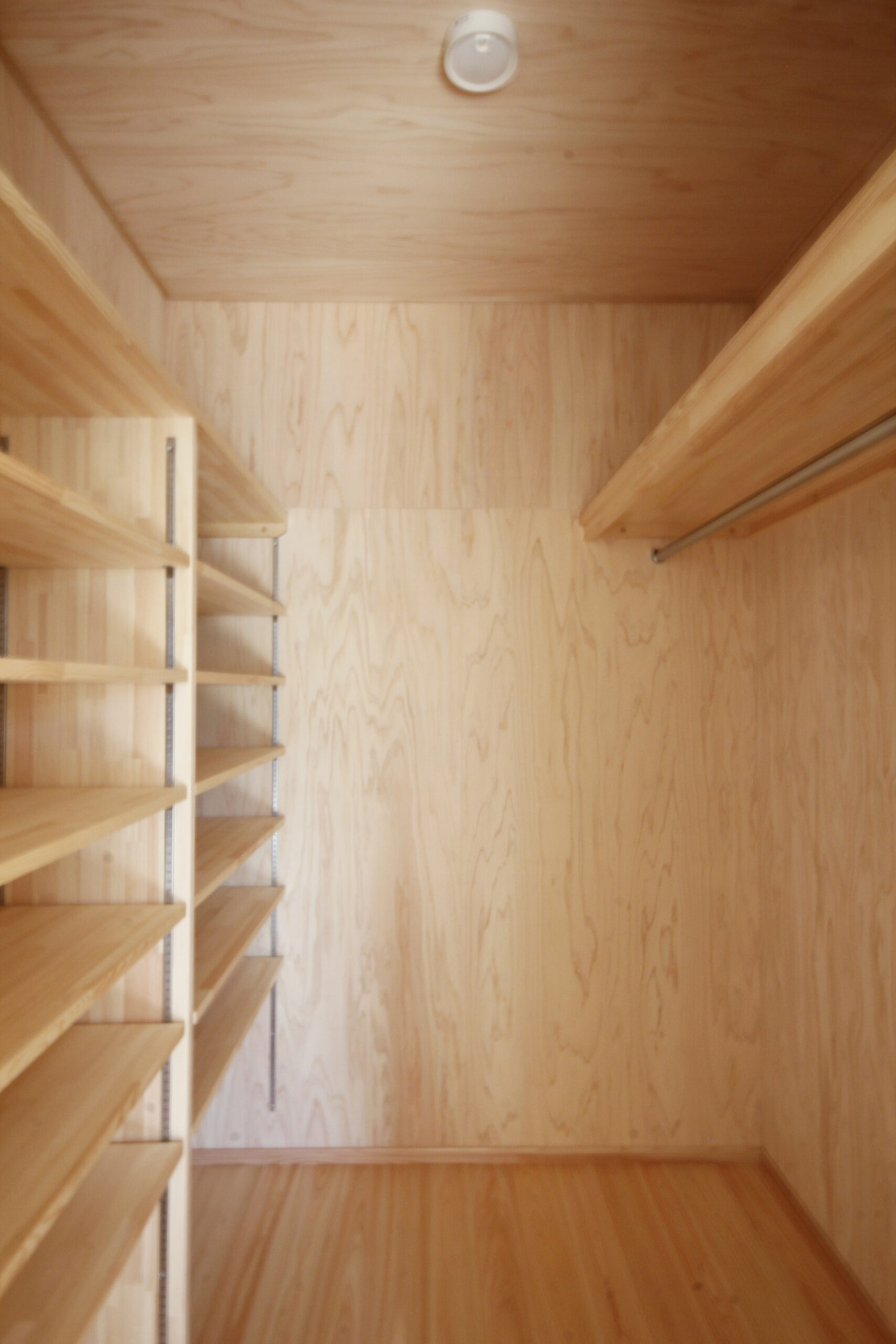 洋服だけではなく季節の家電等も置けるよう天井高まで収納できる可動棚を設置。